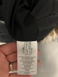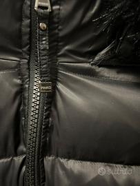 Piumino lunghezza meta’ coscia vera piuma donna tg s nero con cappuccio pelo Cintura in vita con logo Come nuovo