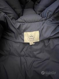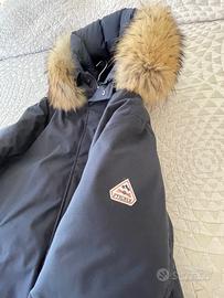 Giubbotto Pyrenex blu scuro, con piuma d'oca e cappuccio con pelo di volpe.