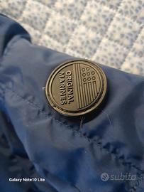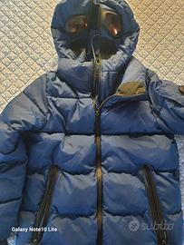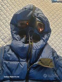 piumino colore blu scuro di marca con cappuccio e occhiali visiera tutto con cerniera per bambino/ ragazzo 10 - 12 anni. tenuto perfetto usato molto poco.