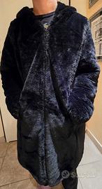 Piumino donna caldo, lungo reversibile, da un lato piumino dall'altro pelliccia.