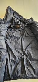 Piumino blu scuro con cappuccio.