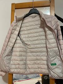 vendo piumino d'oca leggero color rosa antico chiaro marca Benetton taglia small chiusura con cerniera e con tasche.