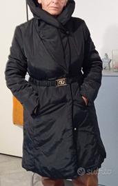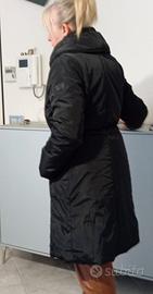 piumino sintetico motivi. colore nero taglia 42 (veste 44) usato due volte. spalle 44 torace 52 manica 61 sottomanica 44 lunghezza totale 92.