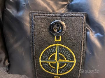 Piumino Stone Island, taglia M, colore nero. Modello leggero ma molto caldo, imbottitura in piuma e classico badge removibile sulla manica sinistra. Vestibilità regolare, zip frontale, tasche laterali con cerniera. Tenuto benissimo, nessun difetto.