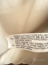 Piumino imbottito con collo alto e maniche lunghe rifinite con polsino elastico. Tasche laterali con cerniera nascosta nella cucitura. Fondo regolabile con elastico e stopper. Chiusura frontale con cerniera. Indossato pochissimo,taglia