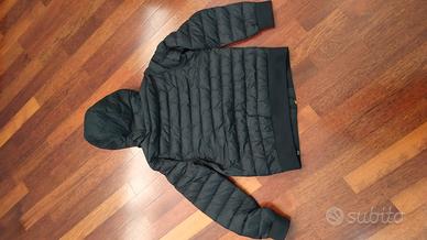 vendo piumino con cappuccio e costina maglia su fondi. lungo cm68 torace cm 57, spalle cm45, lungh. maniche cm 67.