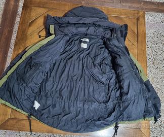 Stupendo piumino taglia L maschile, colore verde e nero, con cappuccio staccabile.