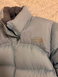 Giacca da donna imbottita in piumino marca The North Face. Imbottitura 700. Colore azzurro. Taglia S