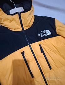 Piumino di The North Face giallo e nero con una macchietta sul retro. Leggermente usurato.