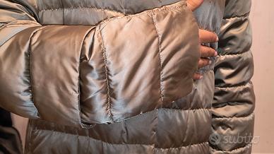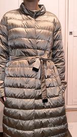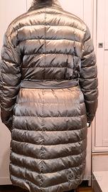 piumino color tortora Max Mara, double face con interno più chiaro, completo di cappuccio e mezze maniche applicabili con abbottonatura a scomparsa