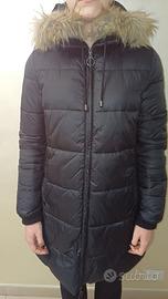 Piumino nero con cappuccio Twin Set. Particolari in lana nel collo e nei polsini, pelo sintetico staccabile nel cappuccio. Due tasche con cerniere, cerniera lunga con due anelli, tutte perfettamente funzionanti. Misura M, 40 cm larghezza spalle, lungo 83 cm. Caldissimo. Spedisco con shopper originale in regalo