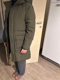 Vendo piumino Uniqlo originale, colore verde oliva, dal design pulito ed essenziale. Modello lungo, perfetto per l’inverno: caldo ma leggero, ideale sia per l’uso quotidiano che per occasioni più curate.