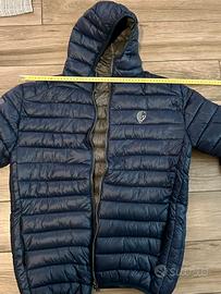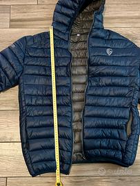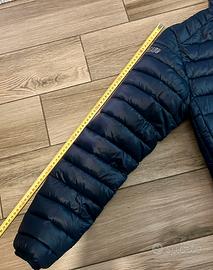 Slim Fit. Chiusura centrale tramite cerniera a vista. 2 tasche laterali con cerniera- Elastico in vita e ai polsi. Ricamo lato cuore e manica destra a contrasto. Come nuovi…Usato solo 3 volte 100% Nylon / Imbottituta 140gr.