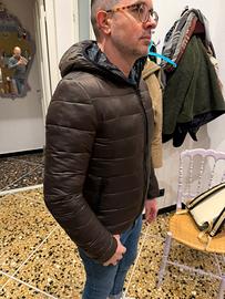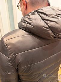 Bellissimo piumino uomo, color bronzo scuro, interno camouflage, perfetto in ogni sua parte perché non usato; taglia M con vestibilita slim-fit. Cerniera perfetta e cappuccio. Tasche laterali.