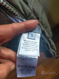 Piumino in vera piuma con cappuccio colore verde. Leggero ma caldissimo. Usato poco è in ottime condizioni