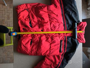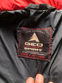 Vendo bellissimo piumino vintage GEO SPIRIT rosso e nero in perfetto stile anni 90, ideale per inverno, sci o look streetwear retro.