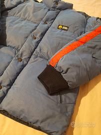 Piumino vintage originale Ciesse Piumini anni ‘80/‘90, Made in Italy, colore azzurro con dettagli blu scuro e striscia rossa sulle maniche. Taglia indicata M (48–50), vestibilità comoda, imbottito e molto caldo, con chiusura a zip e bottoni a pressione frontali, polsini in maglia elastica e tasche laterali con zip. Logo Giesse Piumini presente su petto, interno e cursore della zip, ideale per chi cerca un capo retrò sportivo in stile ski anni ‘80. Condizioni buone generali per l’età: normale usura da utilizzo, nessun difetto strutturale rilevante; pronto da indossare. Perfetto per appassionati di abbigliamento vintage italiano e streetwear.