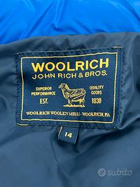 Piumino Woolrich smanicato con cappuccio staccabile, in piuma d’oca, colore blu, taglia 14 anni , usato pochissimo, in ottime condizioni come da foto