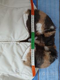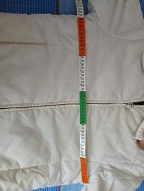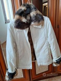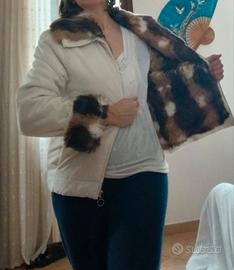 Bellissimo giubbino bianco panna con pelliccia sintetica interna dalle tonalità del marrone (maniche escluse), molto caldo e chic 😍 tg L vedere tutte le misure in particolare sui fianchi dato che la lunghezza arriva in quel punto