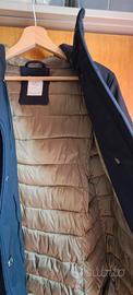 Piumino Yes-Zee donna con n cappuccio Blu con interno ocra Lungo fino alla coscia, schiantato in vita Buone condizioni