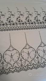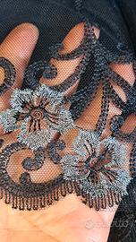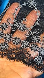 25 scampoli di finissimo pizzo di altissima qualità e di provenienza sartoriale. Ogni pezzo misura da 1 metro a 2 metri e mezzo circa. Quello sul bordeaux è elasticizzato. Mai utilizzati. Il costo di acquisto in merceria sarebbe molto alto. Cedo per inutilizzo.