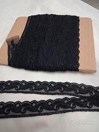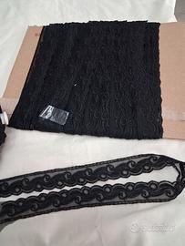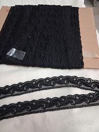 3 pezzi da 9 metri l'uno x un totale di 27 metri di pizzo nero tipo macrame alto 2.30 cm...disponibili altri pezzi