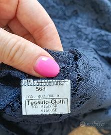 Blusa t-shirt in pizzo blu traforata, taglie forti Delia Ferrari Made in Italy tg 51