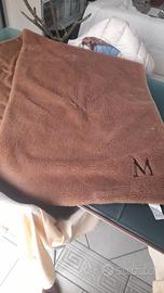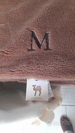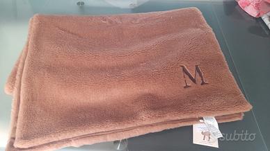 Plaid, cappa, poncho Max Mara Teddy in cammello e seta con M del logo ricamata. Misure 195x70 cm. Fruibile sia come plaid che come poncho o cappa. Nuovo con cartellino.