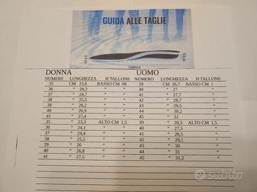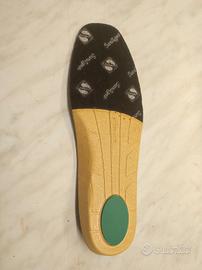 Vendo solette artigianali in pelle di vitello ( Mighior prodotto in commercio) estraibili per calzature UOMO e DONNA, Disponibili tutte le taglie e due altezze di tallone CARATTERISTICHE: I componenti della parte anteriore (microfibra e carboni attivi) hanno un azione antibatterica e di filtraggio del sudore cosi da rimanere il piede asciutto, il componente EVA permette un azione ammortizzante del piede tale da rendere ottima la compressione sanguigna, la parte posteriore ha un effetto antishock. Grazie alla composizione e progettazione questi plantari permettono un ottima salute ai piedi ed un perfetto appoggio Per la misura seguire GUIDA ALLE TAGLIE, NB : si consiglia per un ottima salute del piede ,la sera estrarre i plantari per permettere alla pelle del plantare di asciugare