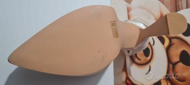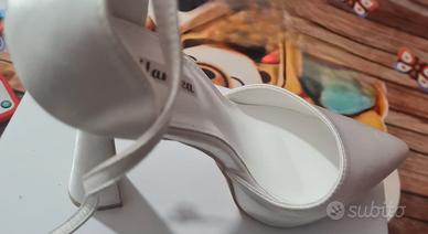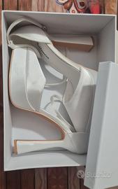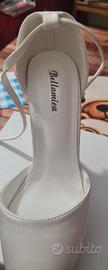 scarpe con tacco plateau in raso di Bellamica, bianche, nuove, mai indossate, numero 40