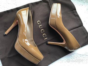 ::::: Prezzo Boutique : 700€ ::::: Marca : GUCCI / Articolo Originale ::: POCO PORTATE ::: OTTIMO STATO ::: Scarpe Platform / Vero Cuoio Misura : 36,5 Tacco : 10,5 cm Colore: Cognac Lucido Nella Scatola originale con la sua Borsa di Protezione