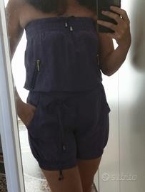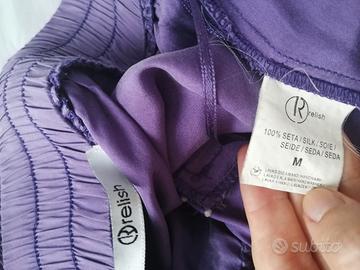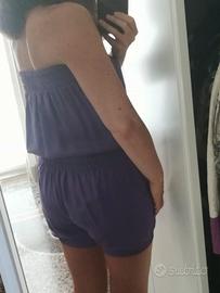 Playsuit / tutina pagliaccetto con pantaloni corti viola, marca Relish, 100% seta, taglia M.