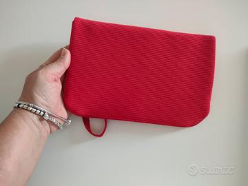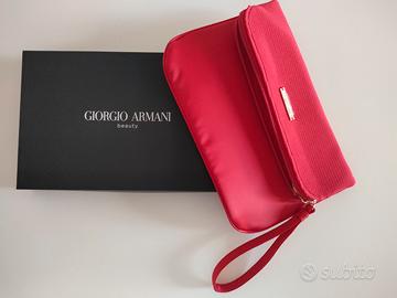 meravigliosa pochette a mano Giorgio Armani, bellissima tonalità di rosso, tessuto molto resistente con lavorazione particolare, nuova ancora imballata, ci sono ancora adesivi in plastica sulle parti metalliche.