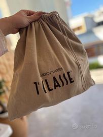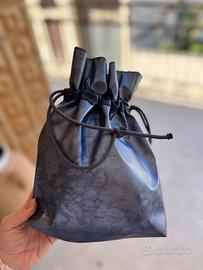 Elegante pochette/sacchetto originale Alviero Martini 1ª Classe, caratterizzata dalla classica stampa Geo nei toni del blu/grigio. Realizzata in tessuto resistente con chiusura a coulisse. Condizioni: ottime, usata pochissimo e ben tenuta. Inclusa dust bag originale.