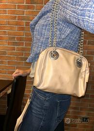 vendo carinissima pochette in pelle rosa cipria con manici fatti a catena in acciaio.