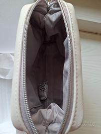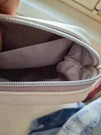 Pochette Svarovsky , porta trucchi ,bianca realizzata in poliestere o vinile con una texture che ricorda la pelle. 20x16 circa.