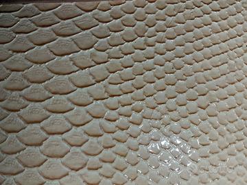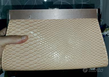 bellissima pochette perfetta per le cerimonie che con abiti casual effetto coccodrillo si indossa sia a mano che con catenella color rosa cipria/beige