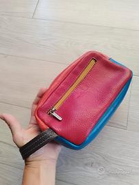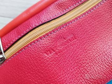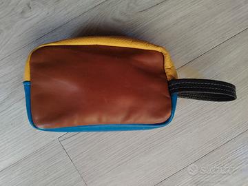 Accessori donna uomo: pochette-borsello in pelle, cerniera centrale. Tasca piccola frontale. Realizzato in cuoio da artigiano "Via Fornari". Usato poco