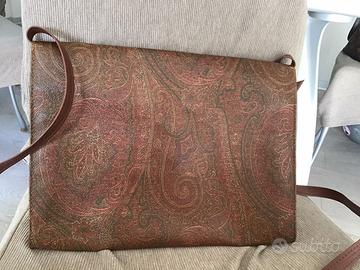 Bag pochette Etro stampa Paisley colore marrone con tracolla. Made in Italy. Misure: cm 30x23