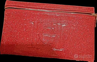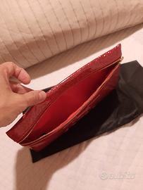 Bellissima bustina Carolina Herrera chiusura zip Vernice color rosso con brillantini. Custodia inclusa. Nuova , originale. 14 x25 cm.