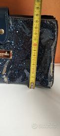 double pochette glitter blu della "Camomilla", doppio scomparto con cerniera. Esterno plastificato impermeabile. Nuova