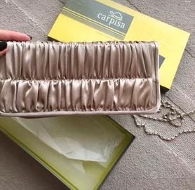 Pochette CARPISA nuova con scatola e cartellino, misure 24 x 10 x 5 cm, colore champagne, con tracollina argentata, mai indossata.