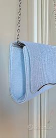 Pochette/ bustin argento/silver in lurex per cerimonia con patta effetto onde, apertura a calamita, tracolla