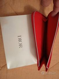 Pochette Dior nuova, mai usata, colore rosso, apertura con cerniera su 2 lati, porta trucchi, nuova, colore rosso, apertura con cerniera su 2 lati, porta trucchi misure 21 x 13 cm, con scatola originale. Idea per un piccolo regalo di Natale.