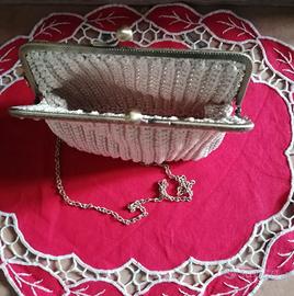 Piccola ed elegante pochette con chiusura clic clac color bronzo e catena di 30 cm.