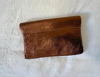 Elegante pochette in vera pelle con finitura metallizzata color bronzo/rame.