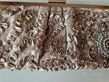 Borsa clutch in seta ricamata Caractère colore champagne con tracolla in metallo e fodera interna