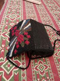borsetta/pochette di perline con tracolla vintage cm. 17 x 10