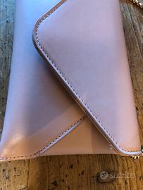Pochette con tracolla dorata color nude del marchio PrimaDonna. Indossata una volta; e in perfette condizioni e senza segni. Dimensioni: 20x12 cm.