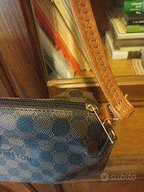 Pochette con tracolla, dimensioni 28 cm x 21 cm. Interni puliti ed in ottime condizioni.